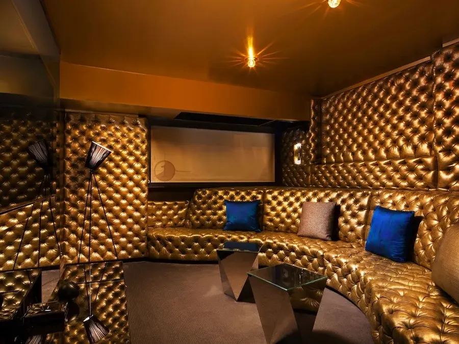 An ivy-covered entrance with glowing emerald-hued stairs invites you into the technicolor lobby which has flashes of pink and gold. Immediately you feel like you’re in an exclusive party. There’s a lavish 12-foot waterfall and modern light installations as well-heeled business types, fashionable tourists, and the occasional UCLA medical resident circle through the lobby.