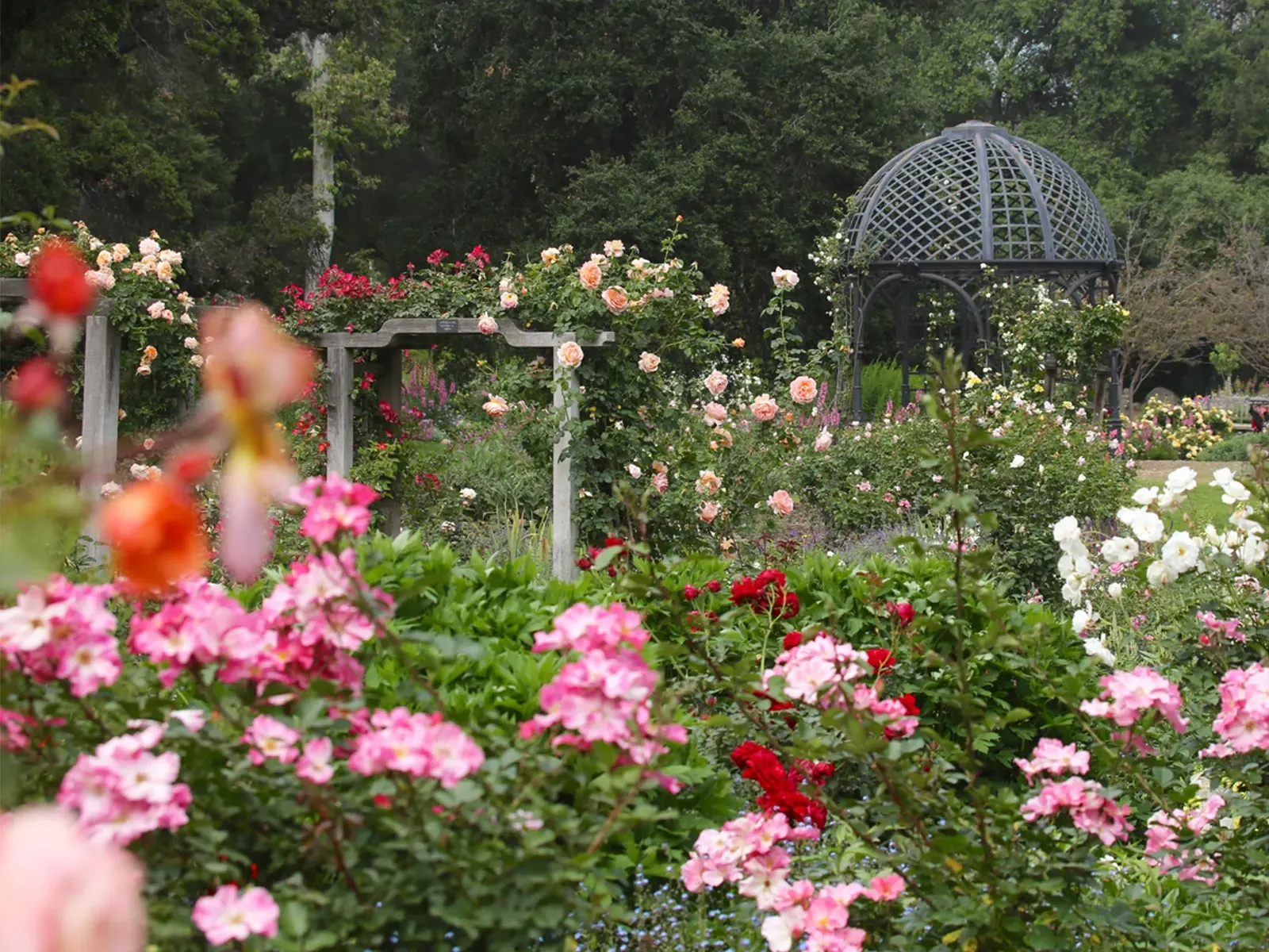 Explore and enjoy this 160 acre lush urban oasis with a camellia oak forest, streams, a lake, bird sanctuary, 5-acre International Rosarium and colorful flower displays.